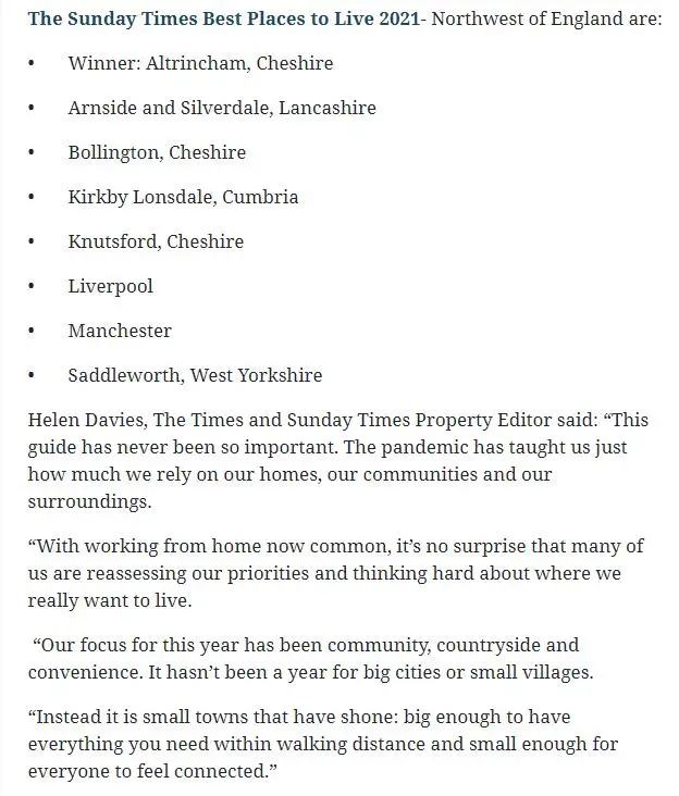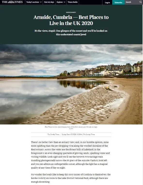 The Sunday Times have just voted Arnside one of the best places to live in the North West of England: