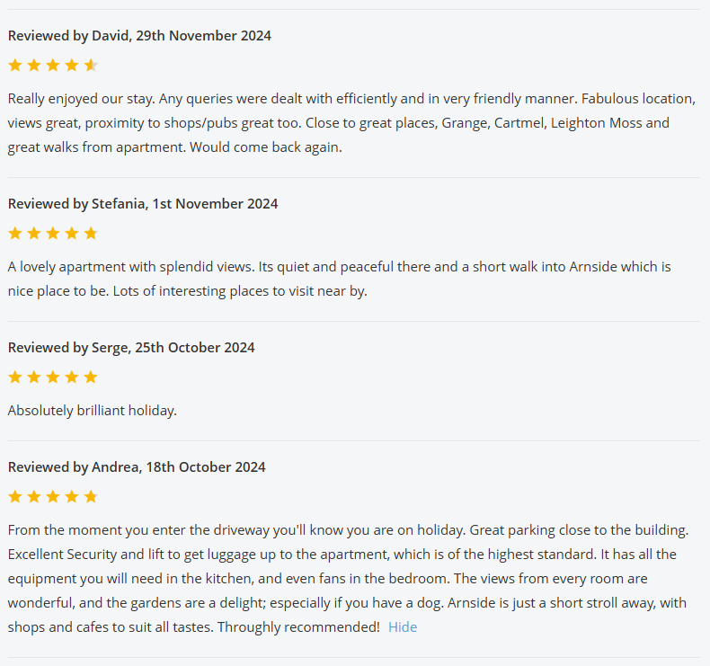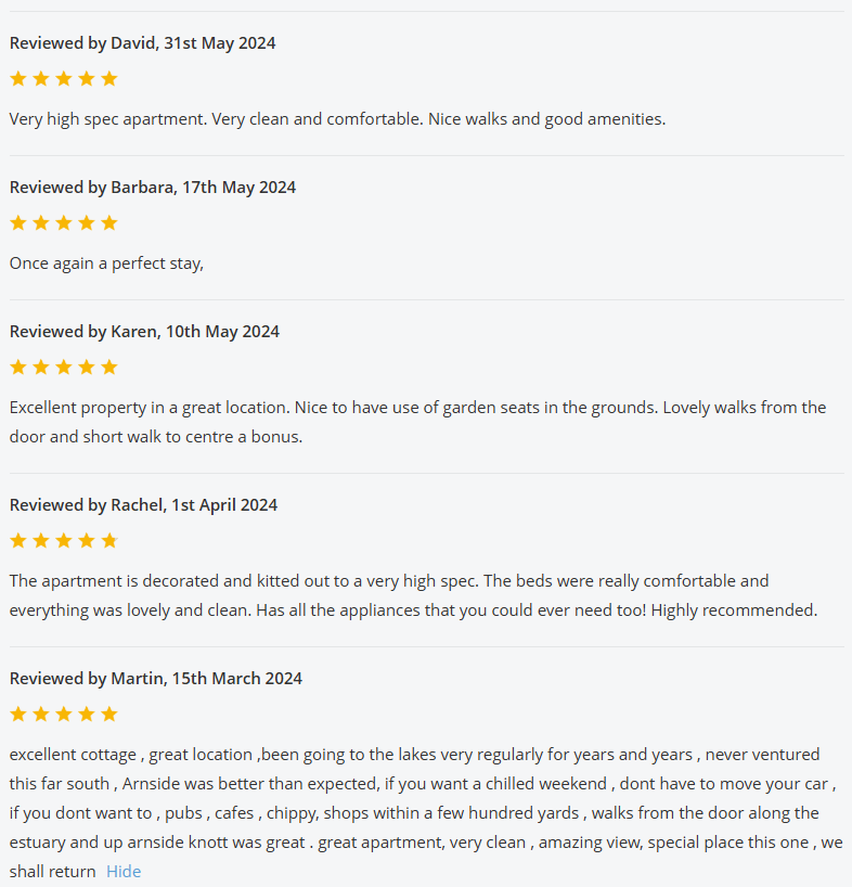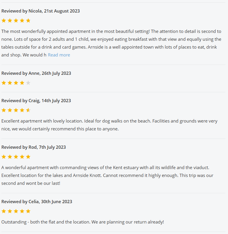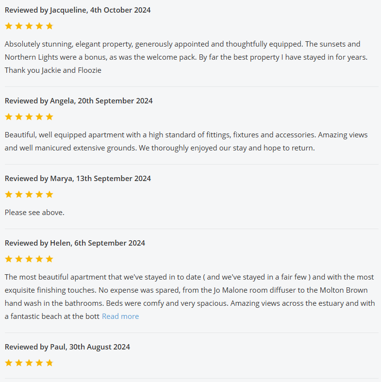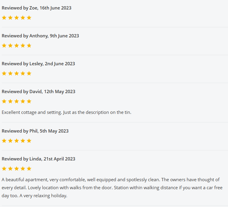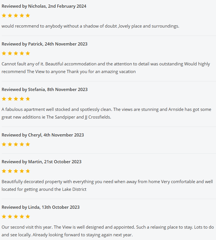 For the past 2 years The View was listed on the Holiday Cottages website, and below are all the reviews we received whilst listed with them: